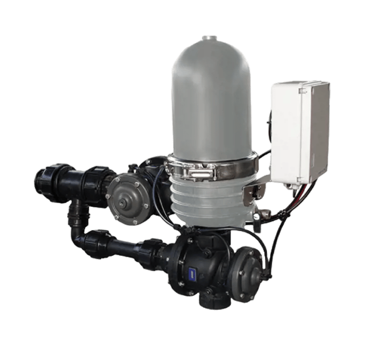 2″ Compact Low Pressure (LP) Disc-Kleen Filters are the perfect solution when automation is desired because manual cleaning is frequent and too cumbersome. A new redesigned filter spine allows flushing at a lower pressure of 30 psi, this saves money on energy costs. The Compact filter can be operated with two controller options, DC (4XD size batteries) or AC (110VAC), will control the filter back flush by pressure differential gauge and/or time. Installation is easy with this pre-assembled compact unit. There are two models based on overall flow with a maximum flow rate of 80 GPM.