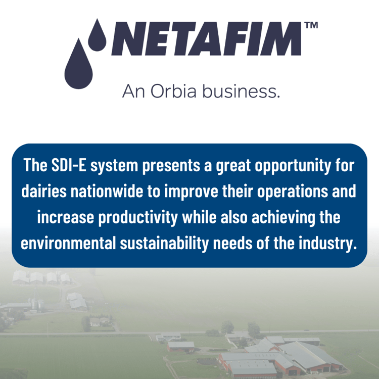 The SDI-E system presents a great opportunity for dairies nationwide to improve their operations and increase productivity while also achieving the environmental sustainability needs of the industry. Netafim is excited to offer this solution and is confident that it will continue to drive a positive impact, one dairy at a time.
