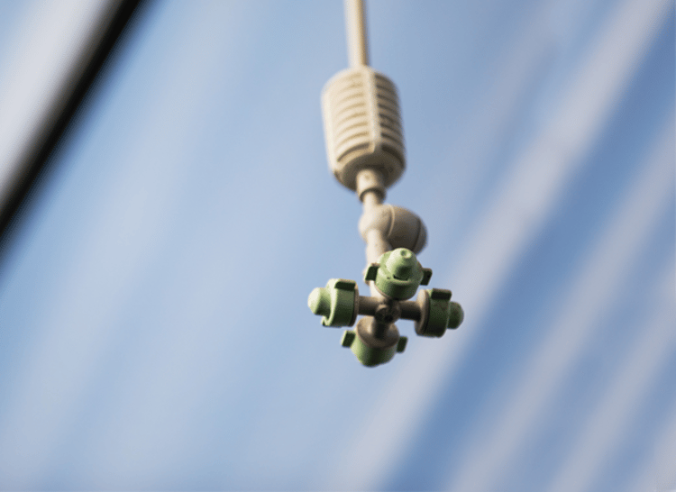 Traditional sprinkler layout spaces the sprinklers “head to head” or at a spacing equal to the radius of the sprinkler throw. The Netafim solution achieves a high level of uniformity within a closely spaced “strip of sprinklers” covering larger areas uniformly.