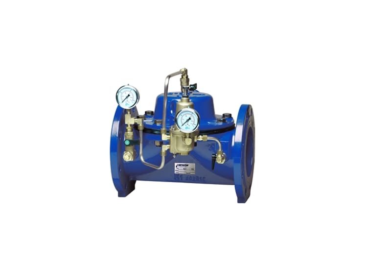 This valve is activated by the line pressure or by an external hydraulic or pneumatic pressure. Valve position is controlled by a pressure reducing pilot valve to achieve constant outlet (downstream) pressure, regardless of upstream pressure or flow variations. A 3-way pilot valve allows full opening when upstream pressure drops below the pressure set point.